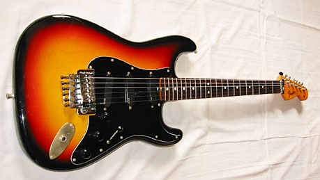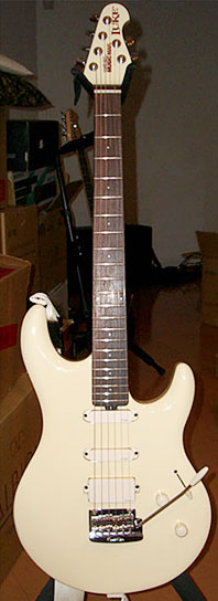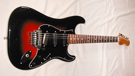 VALLEY ARTS "Pre-Robot" Strat Head era マホガニーボディ、EMG-SA、Floyd Roseという仕様。縁あって知り合いから譲られた逸品です。前オーナーは、80年代前半のモデルを忠実に再現させるためノンファインチューナのフロイドローズだったようですが、譲られた後アームの脱着等の使い勝手のよさを優先させファインチューナ搭載のフロイドローズに換装させてあります。82年の来日での衝撃は今でも忘れません!!。「Baked